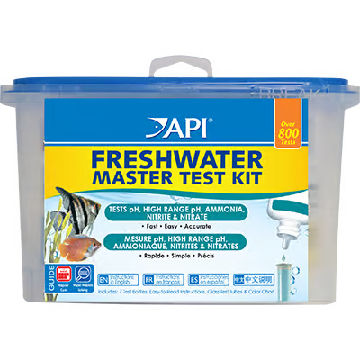 The API® FRESHWATER MASTER TEST KIT measures the 4 most important levels in freshwater aquariums quickly and accurately, including pH, high range pH, ammonia, nitrite, and nitrate. With scientific accuracy for professional results, the reusable FRESHWATER MASTER TEST KIT comes with 4 glass test tubes with snap-tight caps and a convenient holding tub for easy storage. Also includes a step-by-step instruction booklet with a colour chart that provides information on how to correct unsafe water conditions.